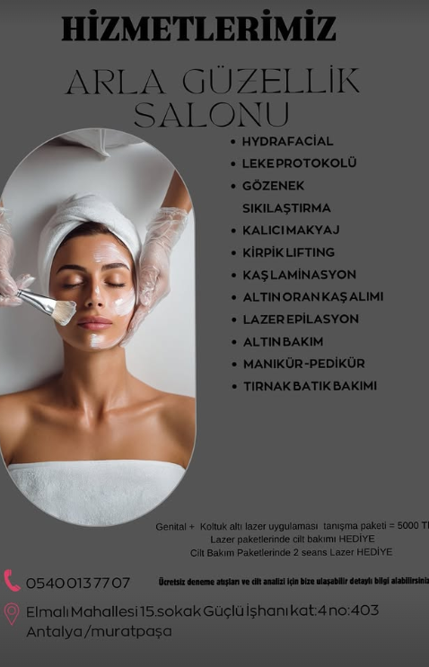 Whatsapp üzerinden ulaşan çok oluyor 0 540 013 77 07 yazan cevap verir adres soran yönlendirir bazen siteye bakıyorlar arlaguzelliksalonu.com.tr ama en doğrusu gelmek çayımız da var sohbet de var Muratpaşa da böyle yerler kalmalı bence