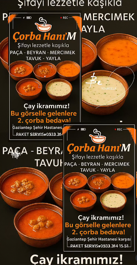 Bizde öyle abartı menü yok mercimek ezogelin kelle paça bazen yayla yapıyorum canım ne isterse. Çorbacı diyip geçmeyin burası biraz sohbet yeri biraz dertleşme köşesi. Gelen oturur iki laf eder karnını doyurur çıkar. corba hanim diye aratan çok oluyo ama biz işimizi reklamdan çok lezzetle büyüttük.
