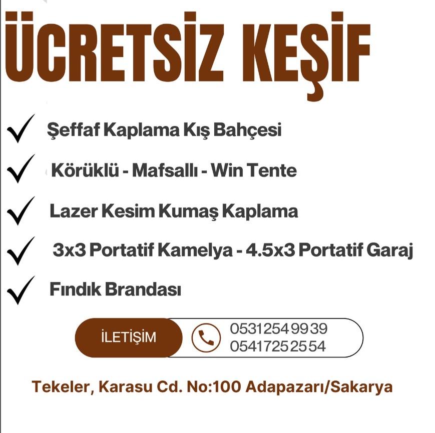 Bana ulaşmak isteyen olursa 0 531 254 99 39 whatsapp açık genelde gün içinde bakarım mail atan da oluyor [email protected] geç dönerim ama dönerim. İnternette sakaryabrandatente.com diye bi sitemiz var ama en iyisi yüz yüze konuşmak. Sakarya küçük yer güven önemli ben de buna dikkat ederim.